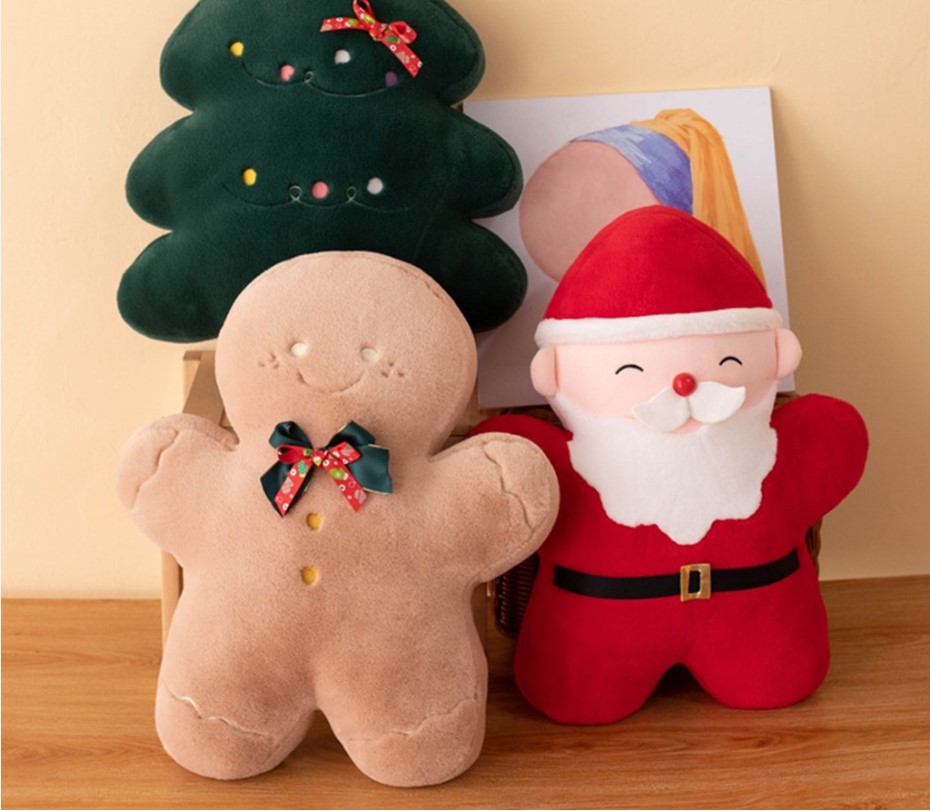 May gối ôm với vải có họa tiết Giáng sinh để không gian nhà thêm ấm cúng.