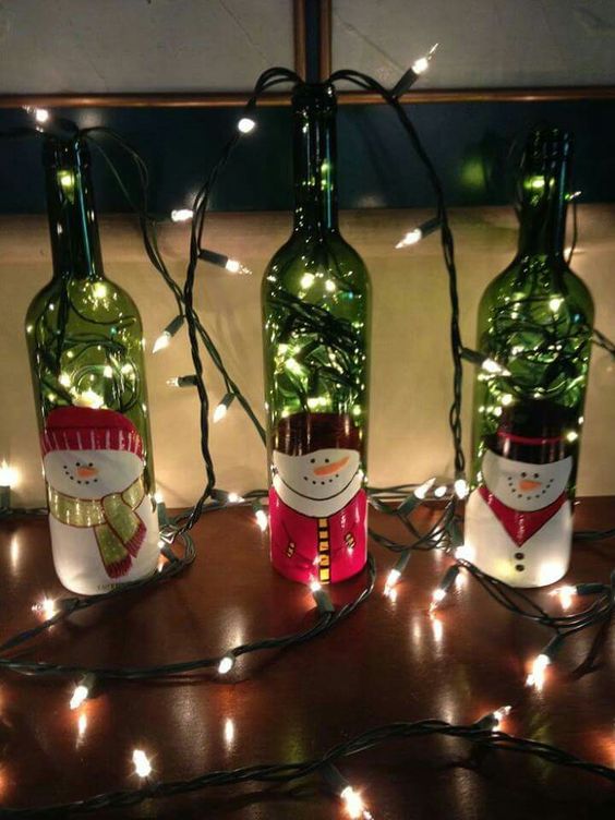 Những chai thủy tinh cũ có thể được trang trí bằng dây đèn LED để tạo nên không gian lung linh huyền ảo.