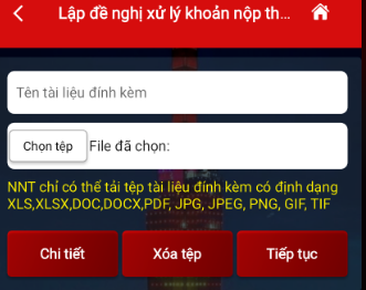 + Bước 8: Đặt tên tài liệu đính kèm và chọn đơn đề nghị hoàn thuế -> Chọn "Tiếp tục"