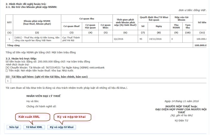 Chọn " Tờ khai XML để kết xuất giấy đề nghị hoàn ra định dạng xml.