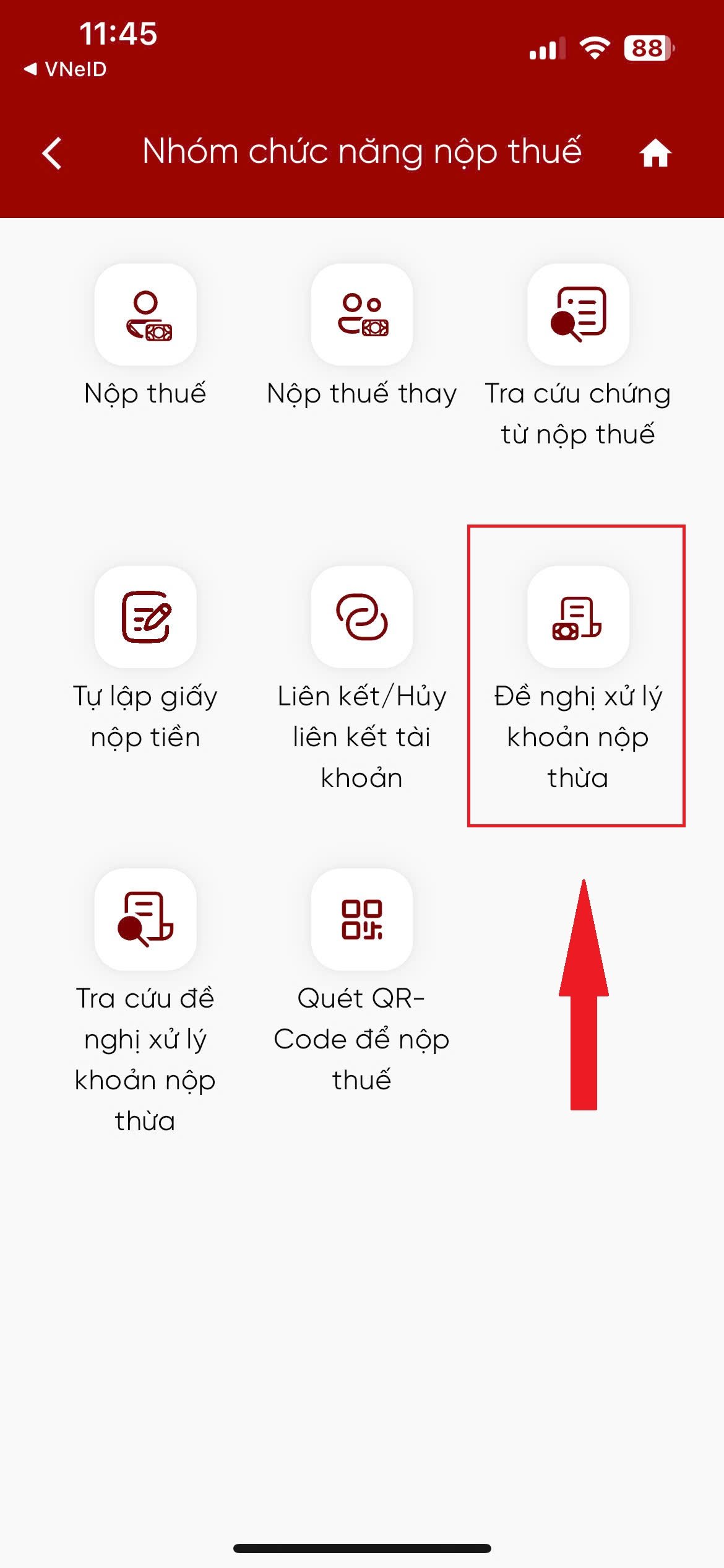 + Bước 2: Chọn “Đề nghị xử lý khoản nộp thừa”