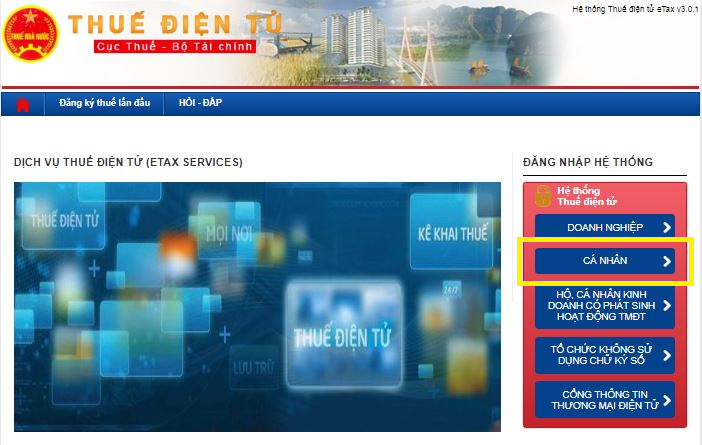 + Bước 2: Chọn Cá nhân và điền thông tin phù hợp tại mục đăng nhập hệ thống.