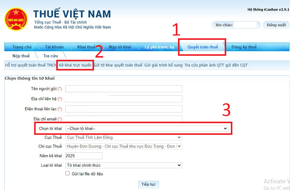 Người nộp thuế nhập dữ liệu theo tờ khai.