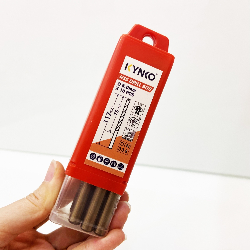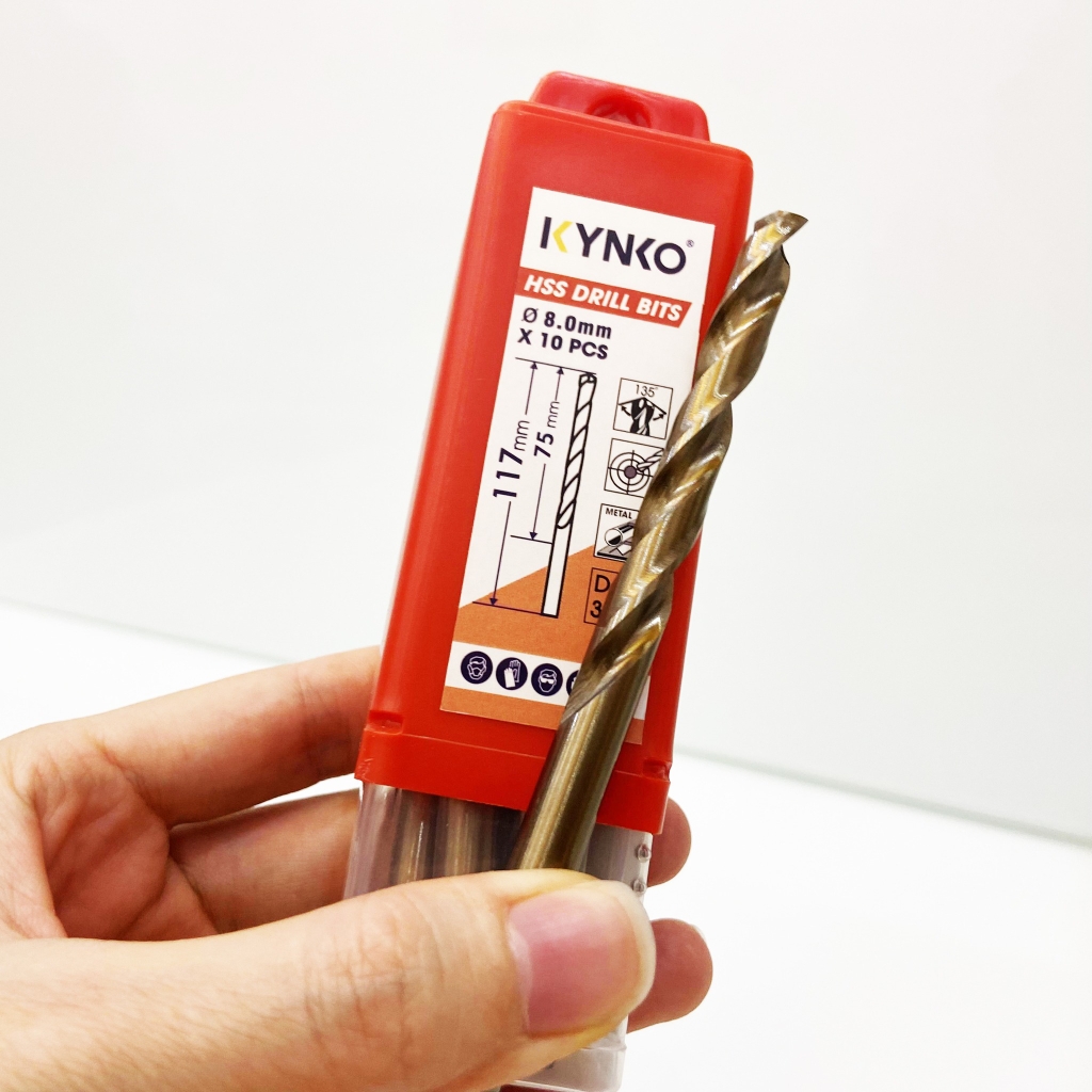 Mũi khoan Inox Kynko được làm từ vật liệu thép gió HSS (High Speed Steel) ký hiệu là M2 tương ứng với mác thép HSS – 6542.
