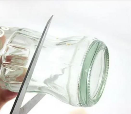 - Lấy kéo cắt nhẹ nhàng vào bề mặt chai lọ thủy tinh