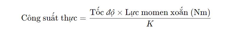+ K: Là hằng số phụ thuộc vào đơn vị đo momen xoắn và tốc độ, giúp điều chỉnh công thức để cho ra kết quả đúng theo tiêu chuẩn đo lường.