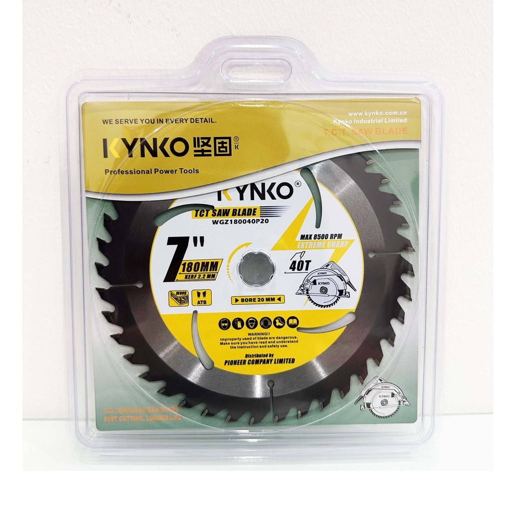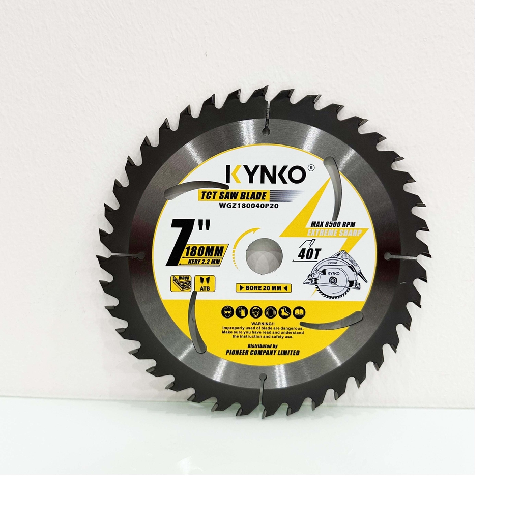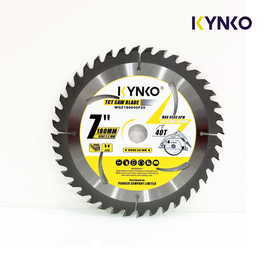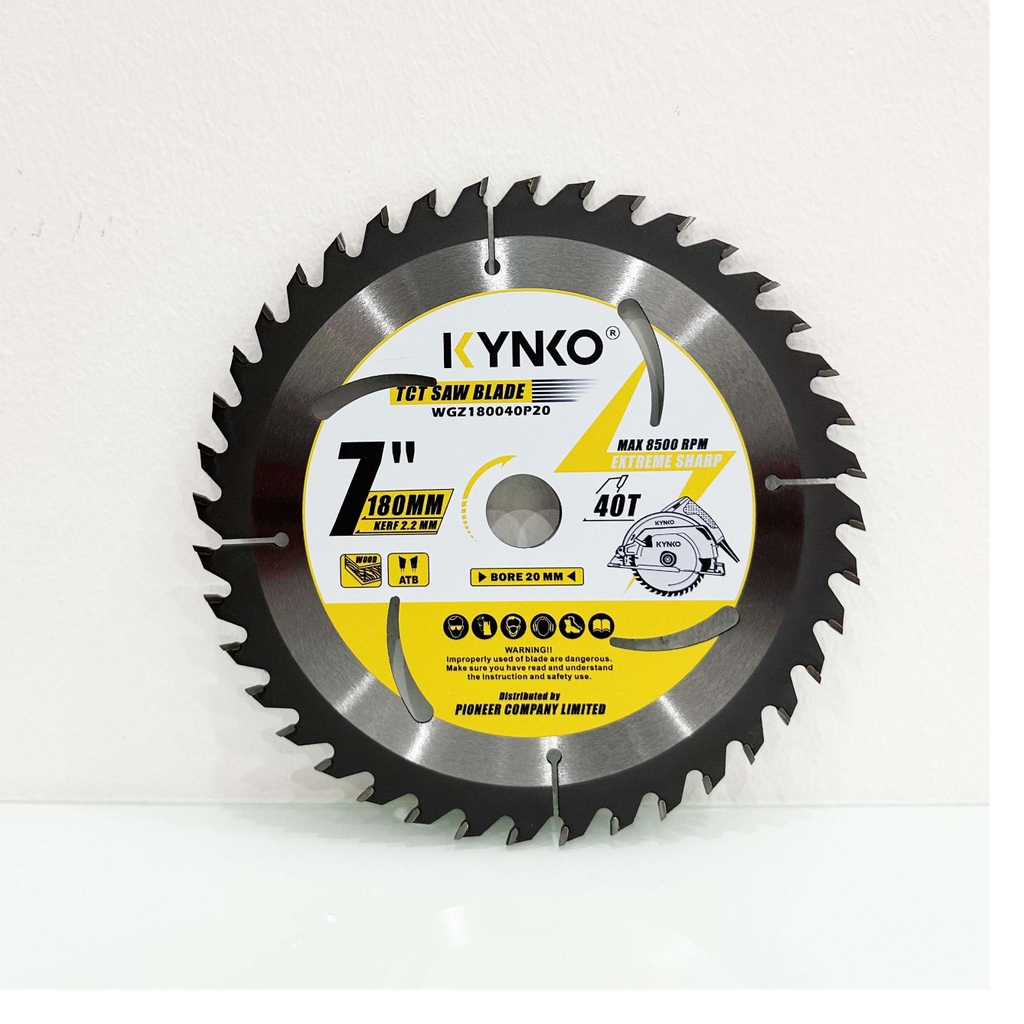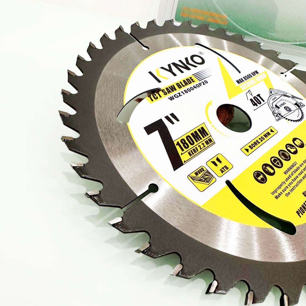 LƯỠI CƯA GỖ TCT 40 RĂNG Ø 180mm KYNKO WGZ180040P20 LÀ DÒNG LƯỠI CHUYÊN DỤNG CHO MÁY CƯA GỖ TRÒN CẦM TAY PHÙ HỢP CÁC DÒNG MÁY ĐƯỜNG KÍNH LỖ TRỤC 20MM