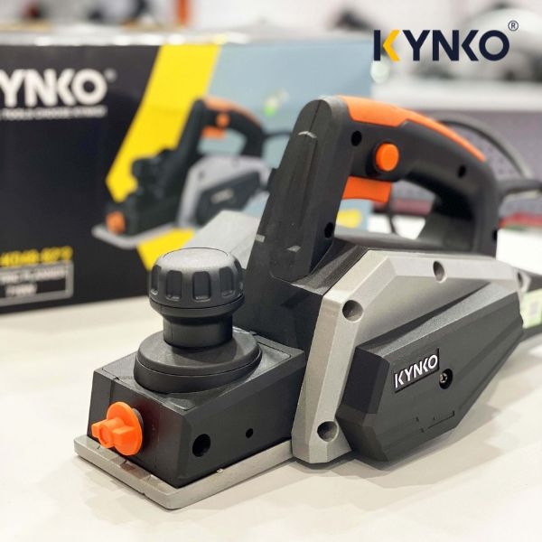 Máy bào gỗ Kynko KD48 hoạt động mạnh mẽ với công suất 710W và tốc độ không tải 16.500 v/p, tiện dụng với nút điều khiển tích hợp trên thân máy.