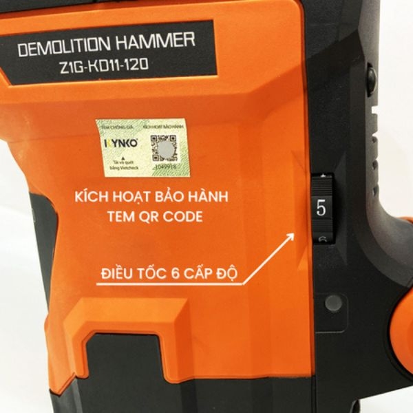 - Điều tốc 6 cấp độ: Một tính năng chỉ có tại máy đục bê tông Kynko KD11 là bộ phận điều tốc (chiết áp) 6 cấp độ, giúp thợ có khả năng điều chỉnh tốc độ đục phù hợp.