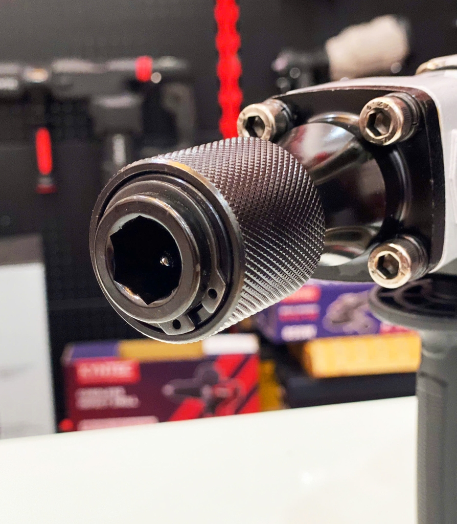 Cải tiến lỗ gắn tay cầm phụ, giúp thao tác linh hoạt và kiểm soát tốt hơn khi làm việc ở các tư thế khó.