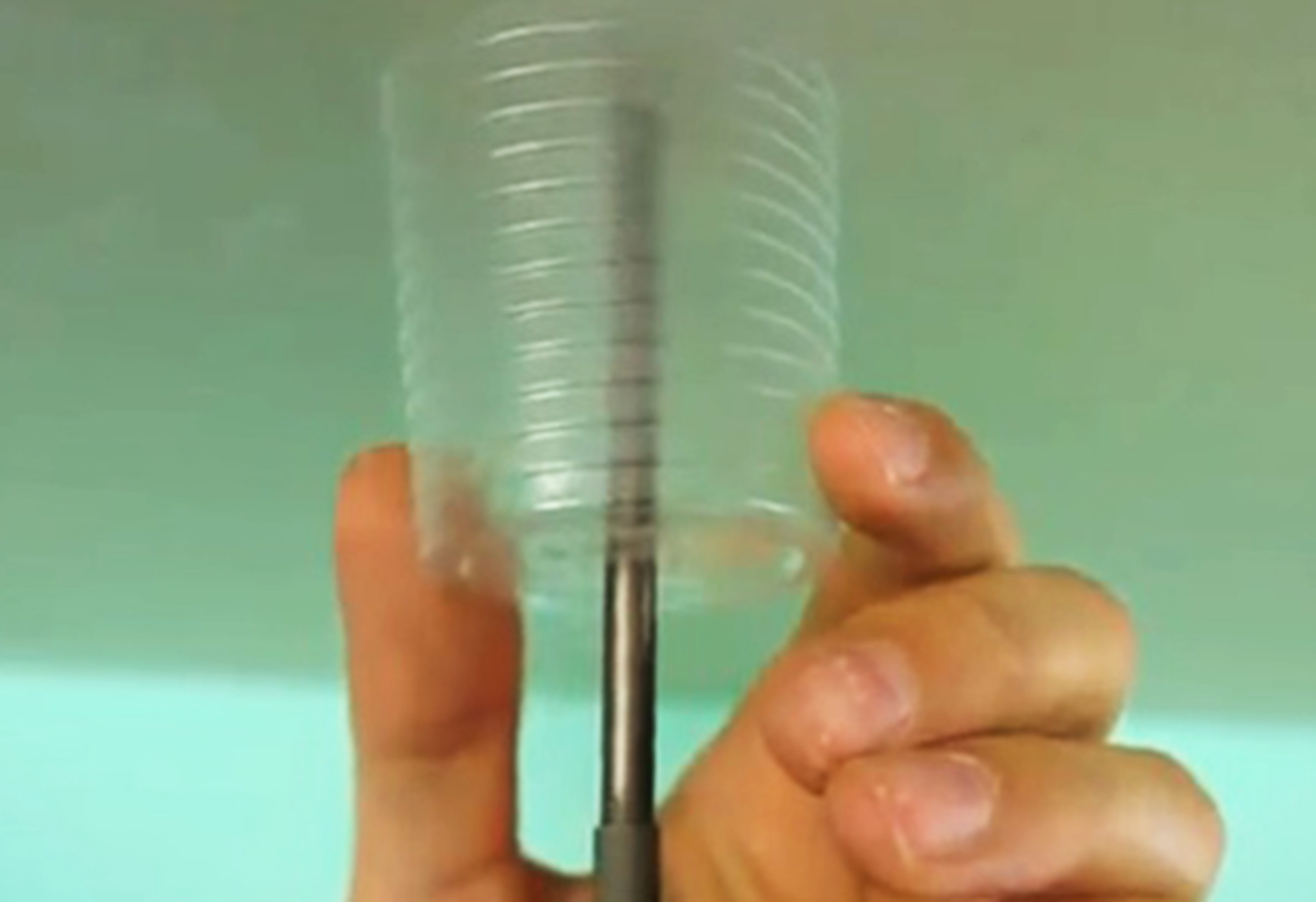 + Dùng kéo cắt cốc sao cho chiều cao của cốc bằng 2/3 mũi khoan.