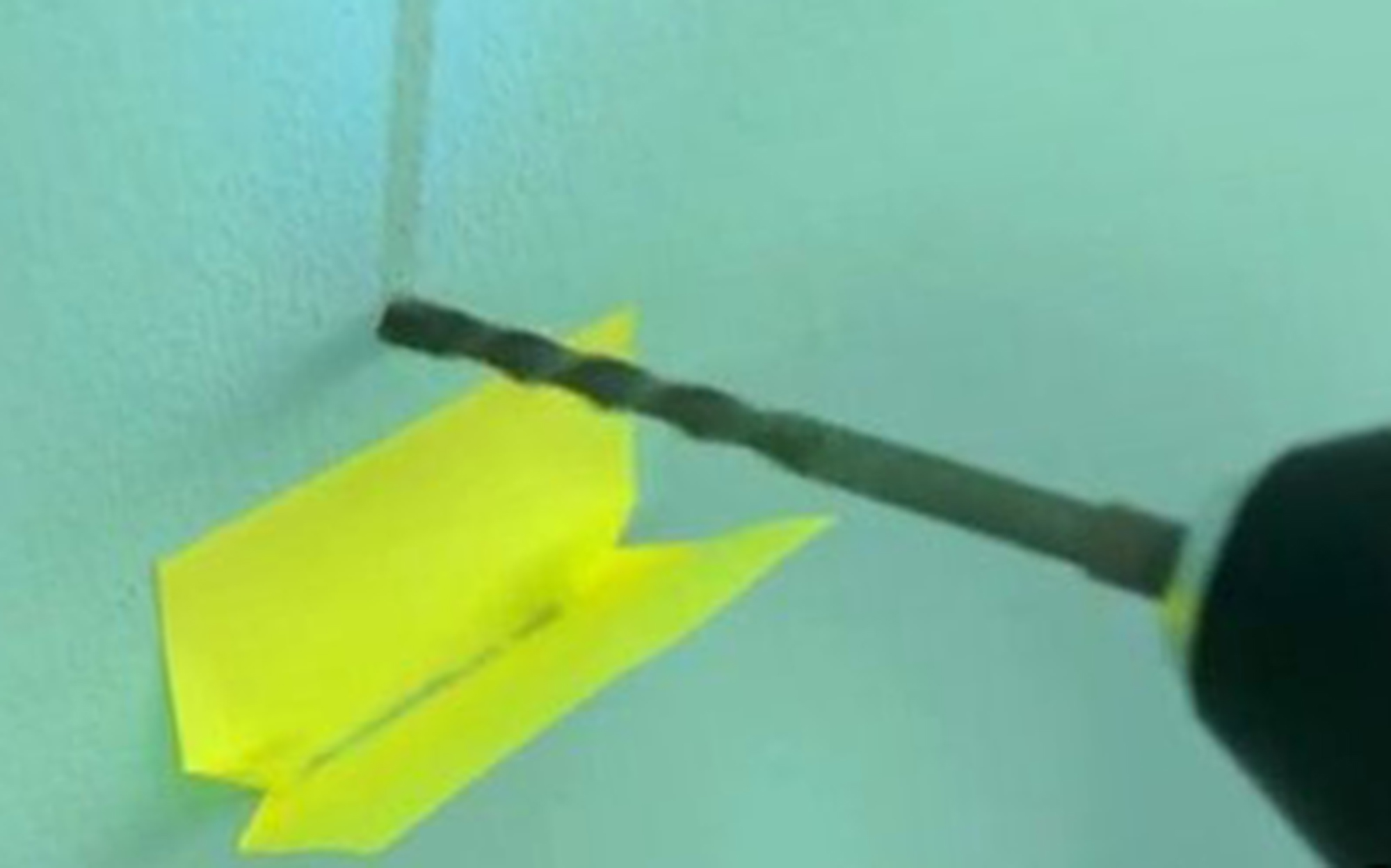 + Dán phần mặt dính của giấy nhớ ngay bên dưới vị trí cần khoan.