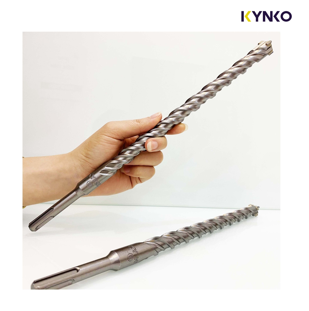 Mũi khoan bê tông KYNKO được sản xuất trên dây chuyền công nghệ hiện đại hoàn toàn tự động từ khâu cấp phôi, tạo rãnh, hàn hợp kim TCT vào đầu mũi, nhiệt luyện, đánh bóng hoàn thiện. Mũi khoan được chế tạo từ vật liệu thép 40Cr và hợp kim TCT YG8C siêu cứng. Chất lượng mũi khoan KYNKO đảm bảo độ cứng chịu được sự va đập cực lớn của các máy khoan KYNKO (một trong những hãng máy khoan có chất lượng và công suất lớn trên thị trường). Đối với những loại mũi khoan thông thường khi chịu tác động của búa khoan sẽ bị biến dạng phình chuôi mũi khoan gây ra kẹt mũi không thể rút ra khỏi máy. Hoặc mũi khoan có thể bị gãy hoặc mòn nhanh trong quá trình sử dụng. Hãng KYNKO đã chế tạo sản phẩm đạt được chất lượng cao, đảm bảo hoạt động ổn định và tuổi thọ lâu dài. Mũi khoan Kynko có rất nhiều loại đường kính, chiều dài, kiểu rãnh thoát phôi, đầu mũi khoan.