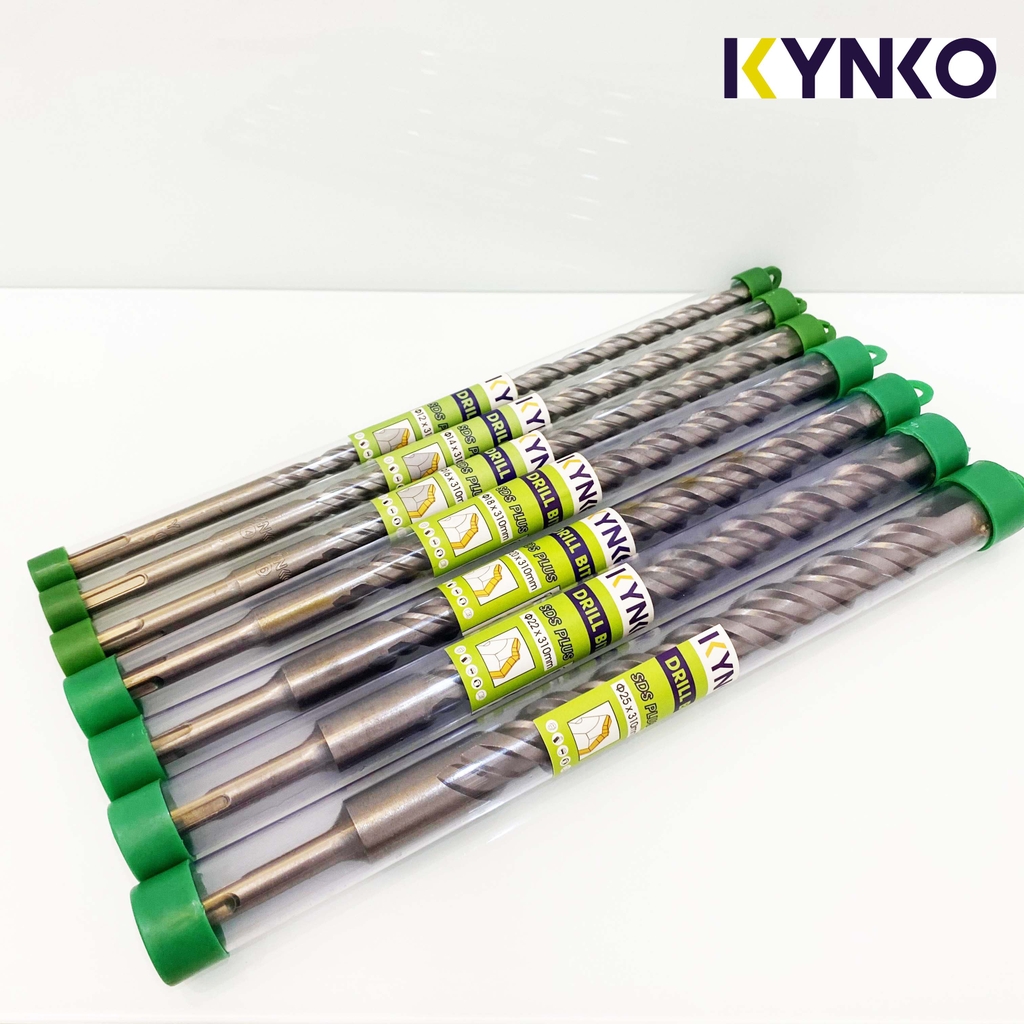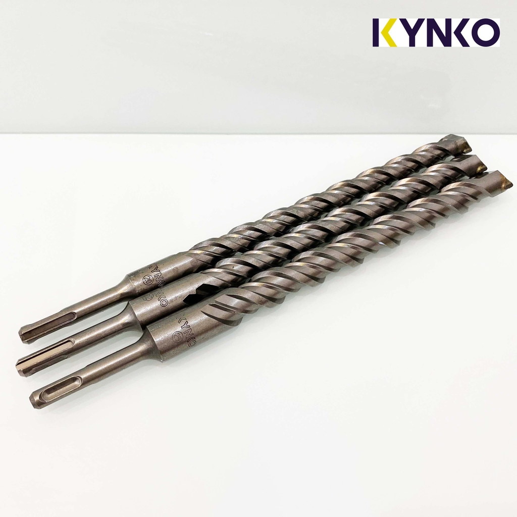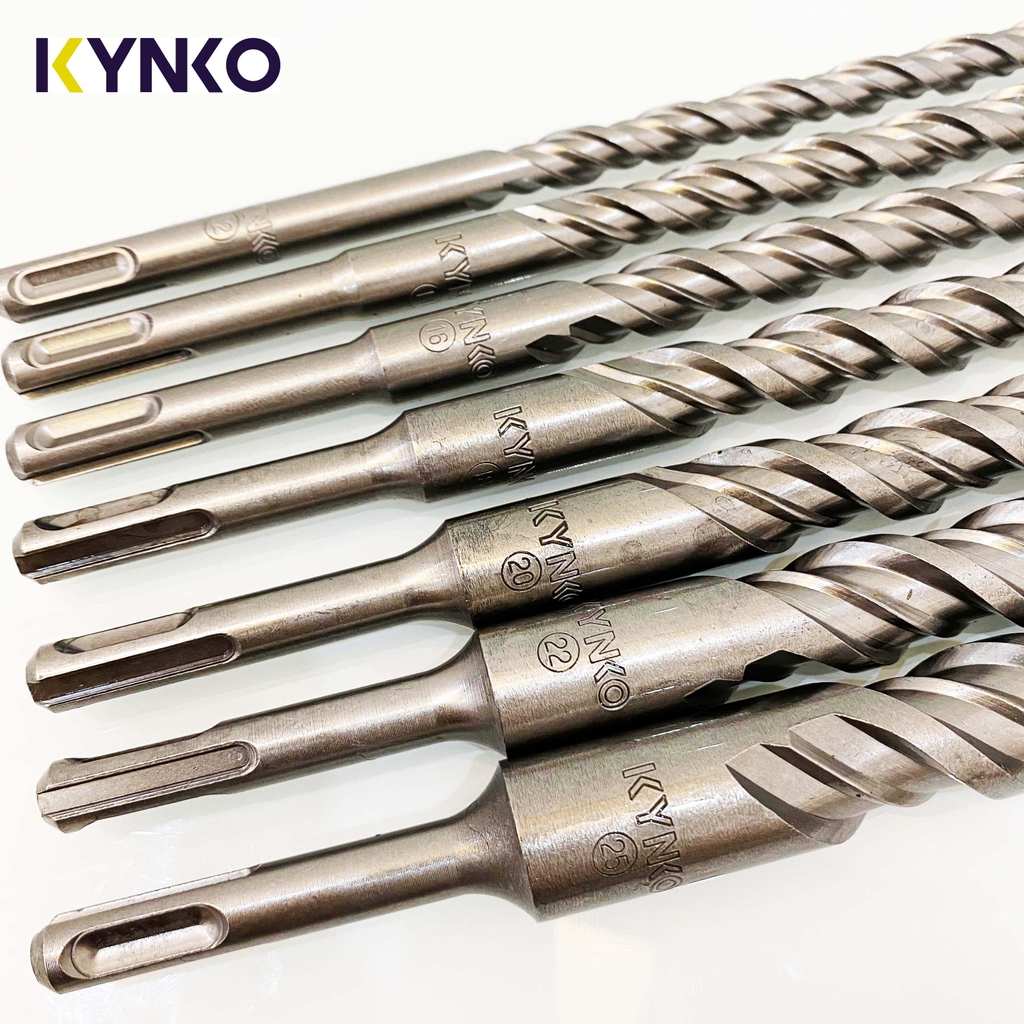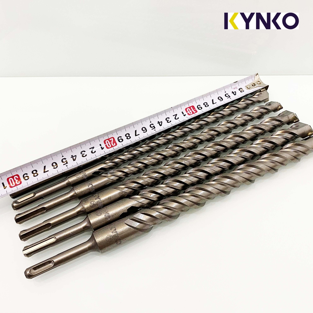 Mũi khoan bê tông KYNKO được sản xuất trên dây chuyền công nghệ hiện đại hoàn toàn tự động từ khâu cấp phôi, tạo rãnh, hàn hợp kim TCT vào đầu mũi, nhiệt luyện, đánh bóng hoàn thiện. Mũi khoan được chế tạo từ vật liệu thép 40Cr và hợp kim TCT YG8C siêu cứng. Chất lượng mũi khoan KYNKO đảm bảo độ cứng chịu được sự va đập cực lớn của các máy khoan KYNKO (một trong những hãng máy khoan có chất lượng và công suất lớn trên thị trường). Đối với những loại mũi khoan thông thường khi chịu tác động của búa khoan sẽ bị biến dạng phình chuôi mũi khoan gây ra kẹt mũi không thể rút ra khỏi máy. Hoặc mũi khoan có thể bị gãy hoặc mòn nhanh trong quá trình sử dụng. Hãng KYNKO đã chế tạo sản phẩm đạt được chất lượng cao, đảm bảo hoạt động ổn định và tuổi thọ lâu dài. Mũi khoan Kynko có rất nhiều loại đường kính, chiều dài, kiểu rãnh thoát phôi, đầu mũi khoan.