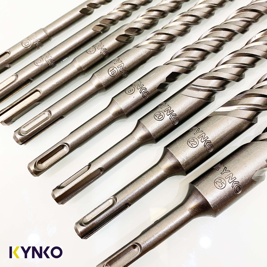 Mũi khoan bê tông KYNKO được sản xuất trên dây chuyền công nghệ hiện đại hoàn toàn tự động từ khâu cấp phôi, tạo rãnh, hàn hợp kim TCT vào đầu mũi, nhiệt luyện, đánh bóng hoàn thiện. Mũi khoan được chế tạo từ vật liệu thép 40Cr và hợp kim TCT YG8C siêu cứng. Chất lượng mũi khoan KYNKO đảm bảo độ cứng chịu được sự va đập cực lớn của các máy khoan KYNKO (một trong những hãng máy khoan có chất lượng và công suất lớn trên thị trường). Đối với những loại mũi khoan thông thường khi chịu tác động của búa khoan sẽ bị biến dạng phình chuôi mũi khoan gây ra kẹt mũi không thể rút ra khỏi máy. Hoặc mũi khoan có thể bị gãy hoặc mòn nhanh trong quá trình sử dụng. Hãng KYNKO đã chế tạo sản phẩm đạt được chất lượng cao, đảm bảo hoạt động ổn định và tuổi thọ lâu dài. Mũi khoan Kynko có rất nhiều loại đường kính, chiều dài, kiểu rãnh thoát phôi, đầu mũi khoan.