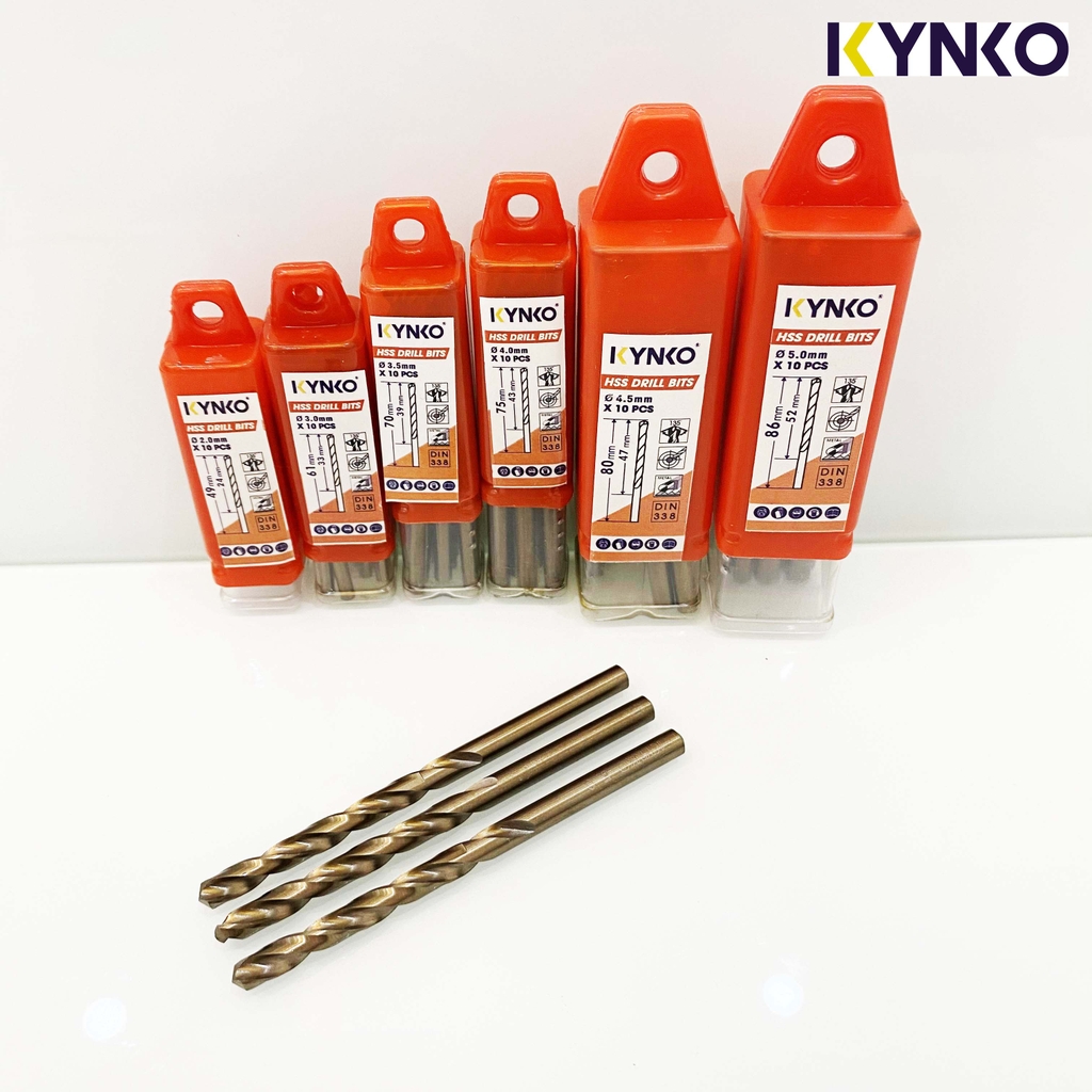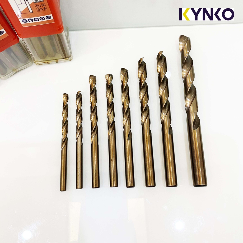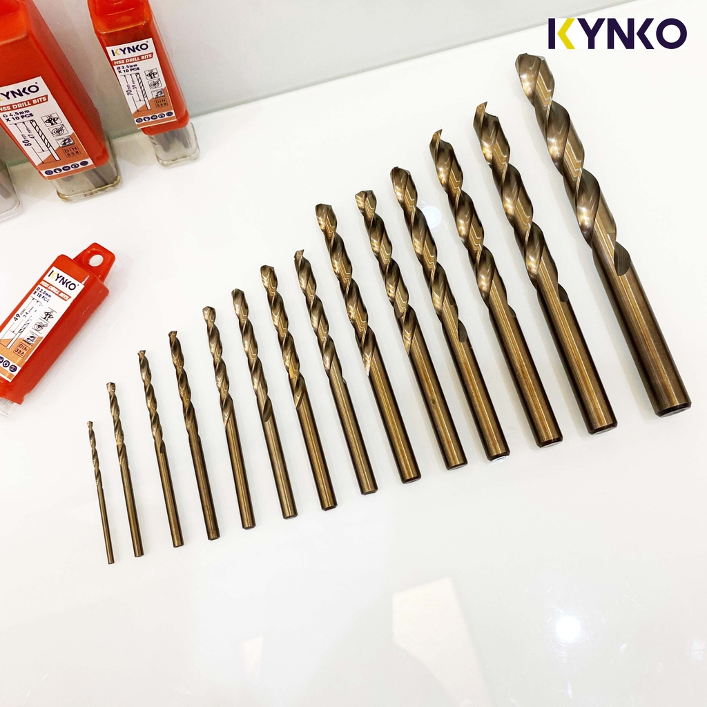 Mũi khoan Inox Kynko được làm từ vật liệu thép gió HSS (High Speed Steel) ký hiệu là M2 tương ứng với mác thép HSS – 6542. Đây chính là loại thép có độ cứng và độ bền cắt rất cao phù hợp với các loại dụng cụ cắt gọt. Mũi khoan Inox Kynko M2 thuộc dòng thép gió Molypden có độ bền uốn cao nhất đến 4700Mpa.