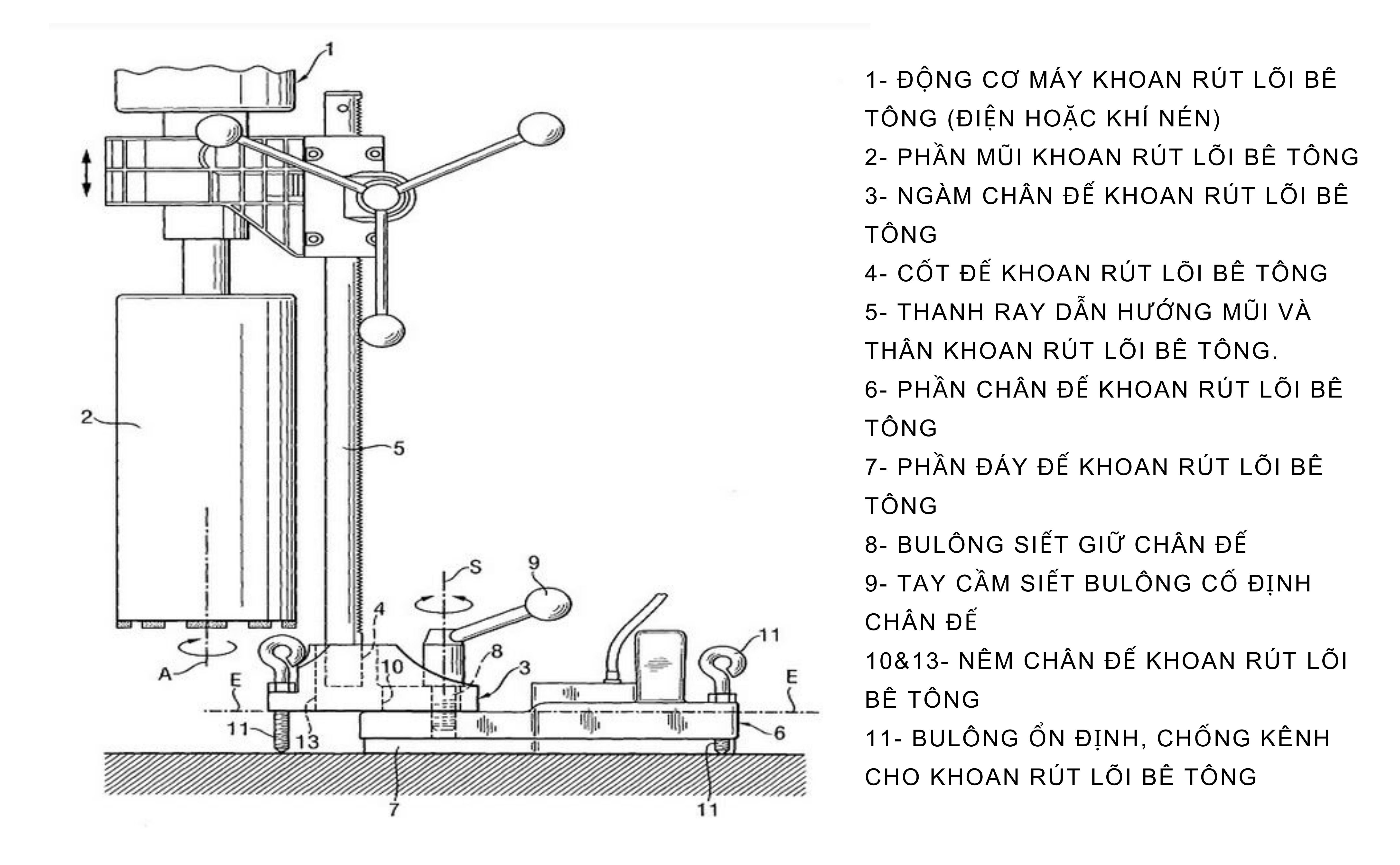 Máy khoan rút lõi bê tông bao gồm các bộ phận cơ bản sau: