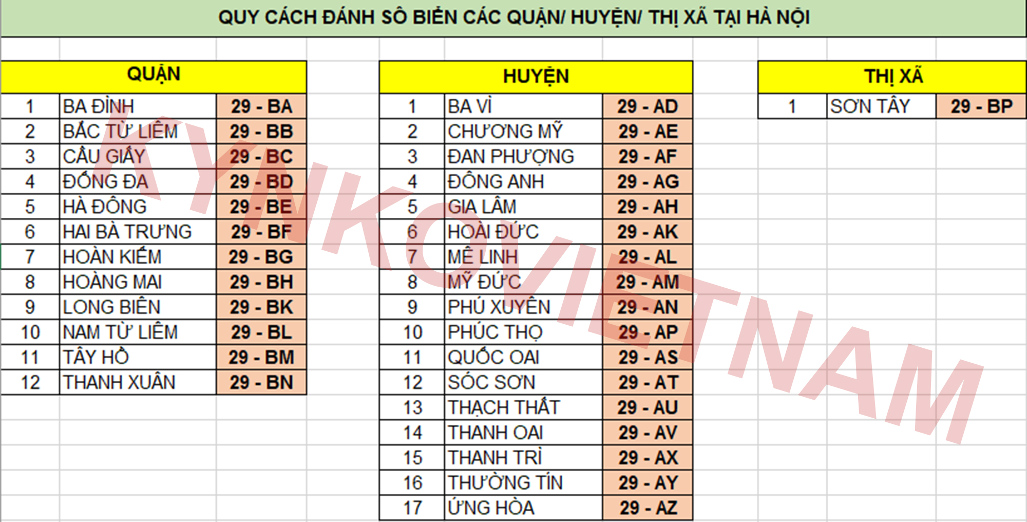 Quy Tắc Đánh Biển/ Bảng Số Xe Các Quận/ Huyện Tại Hà Nội Mới Nhất 2024 như sau: