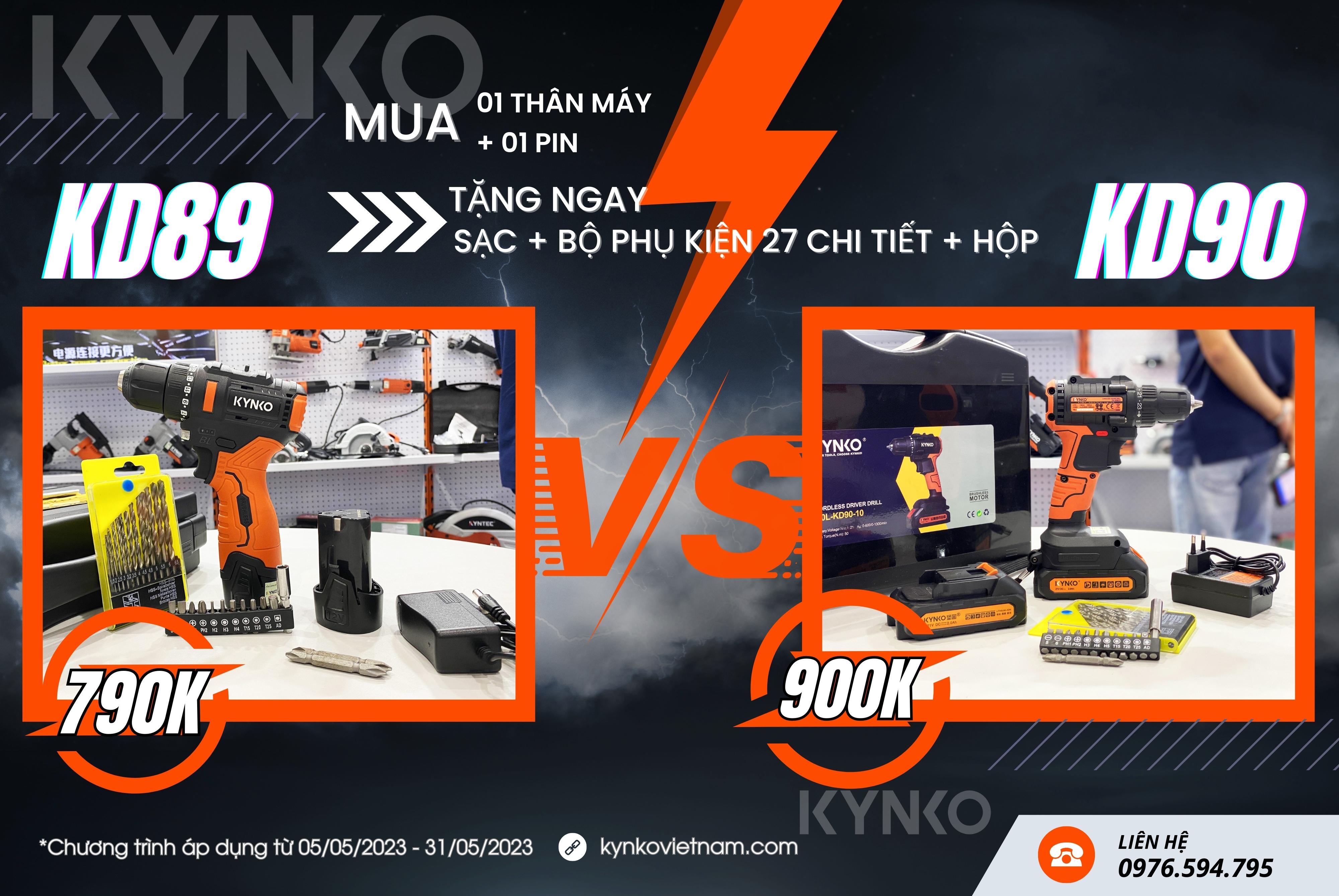 - Mua 01 thân máy KD89 + 01 pin 2.0Ah tặng (sạc + bộ phụ kiện 27 chi tiết + hộp đi kèm) = 790.000đ.