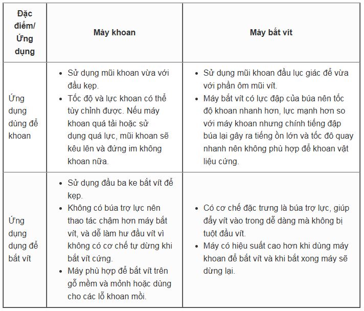 3. So Sánh Máy Khoan và Máy Bắt Vít