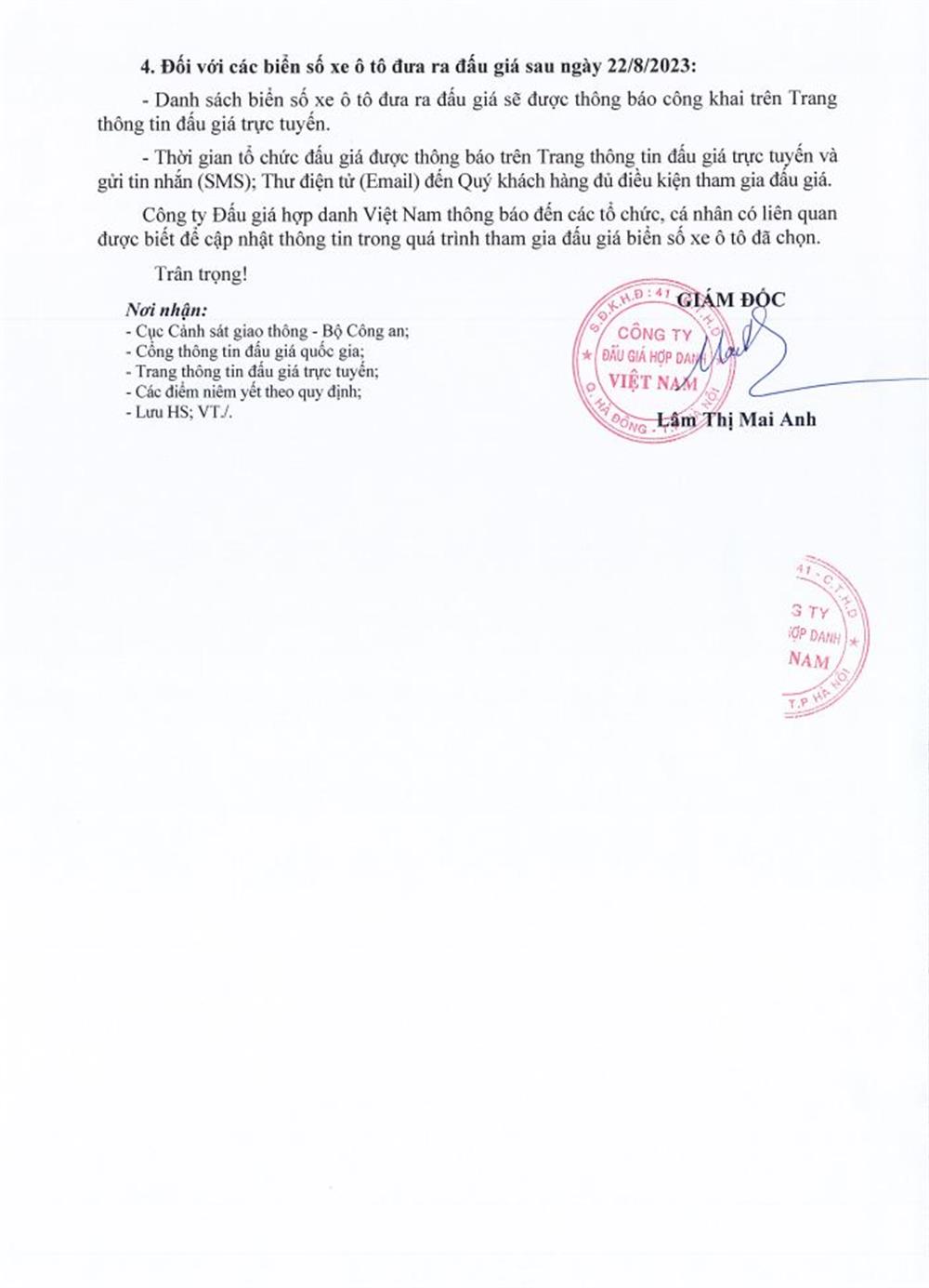 - Thời gian đấu giá: 60 phút/01 biển số xe ô tô (chi tiết theo Danh sách).