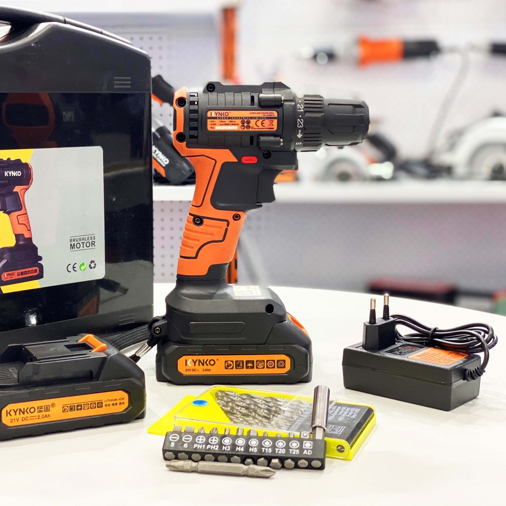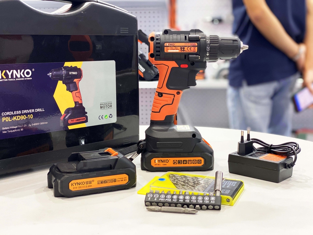 Máy khoan pin KYNKO P0L-KD90-10 sở hữu động cơ không chổi than 21V cực khỏe, lực xiết tối đa đạt đến 50Nm và có thể điều chỉnh được các cấp lực xiết với 20 cấp độ và 1 chức năng khoan.