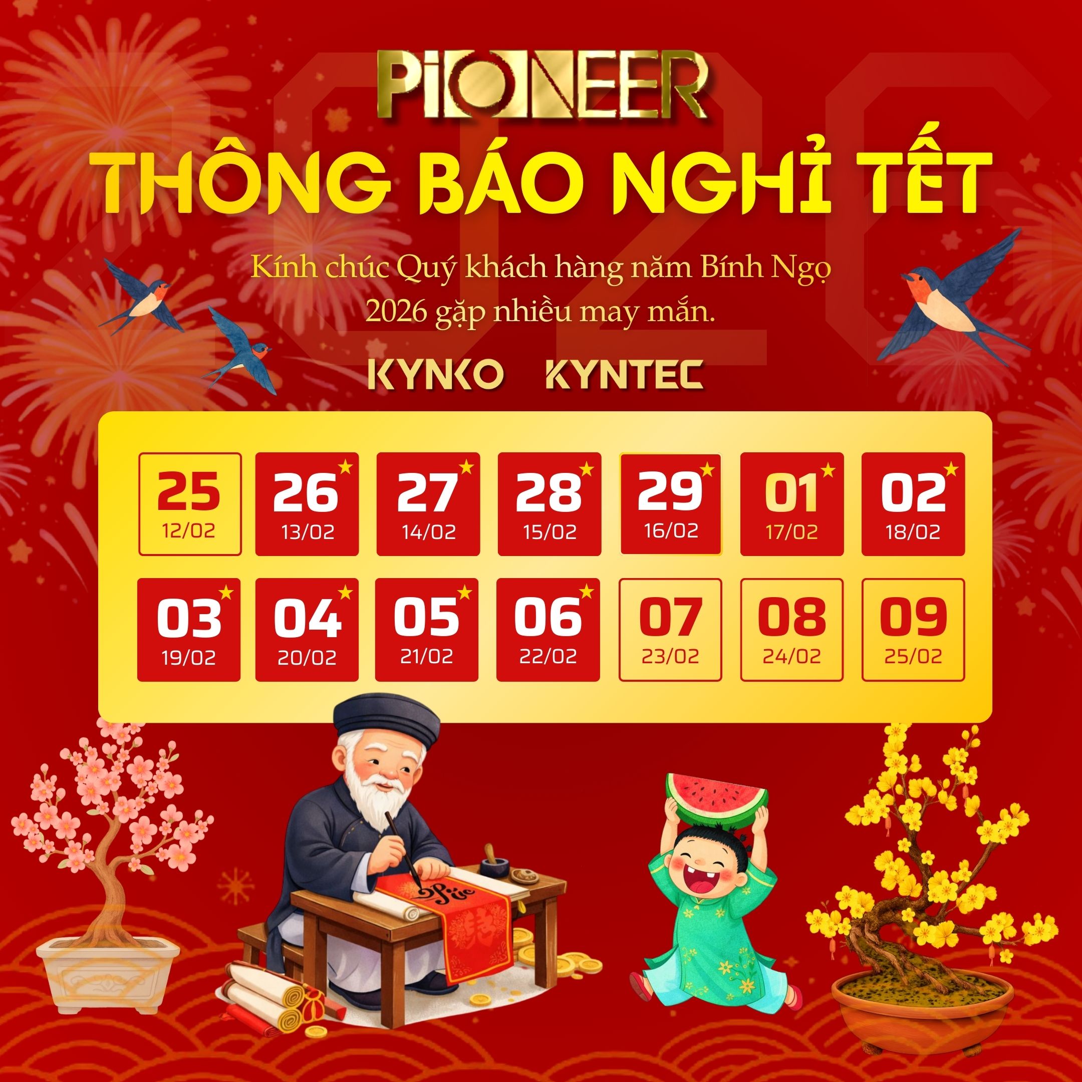 Nhân dịp Tết Nguyên Đán 2026 đang đến gần, Kynko - Kyntec Việt Nam xin trân trọng thông báo lịch nghỉ Tết như sau: