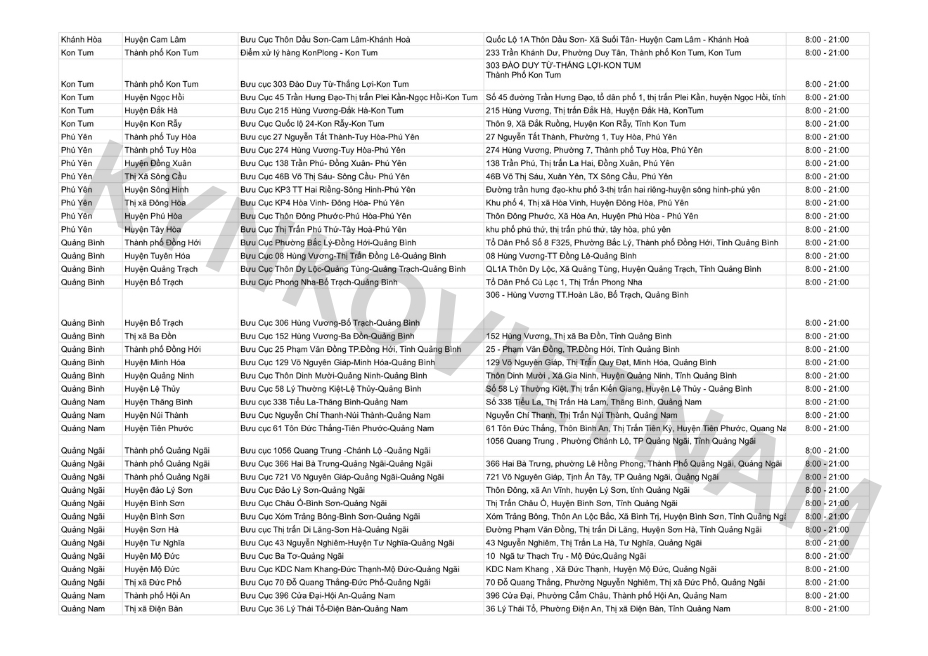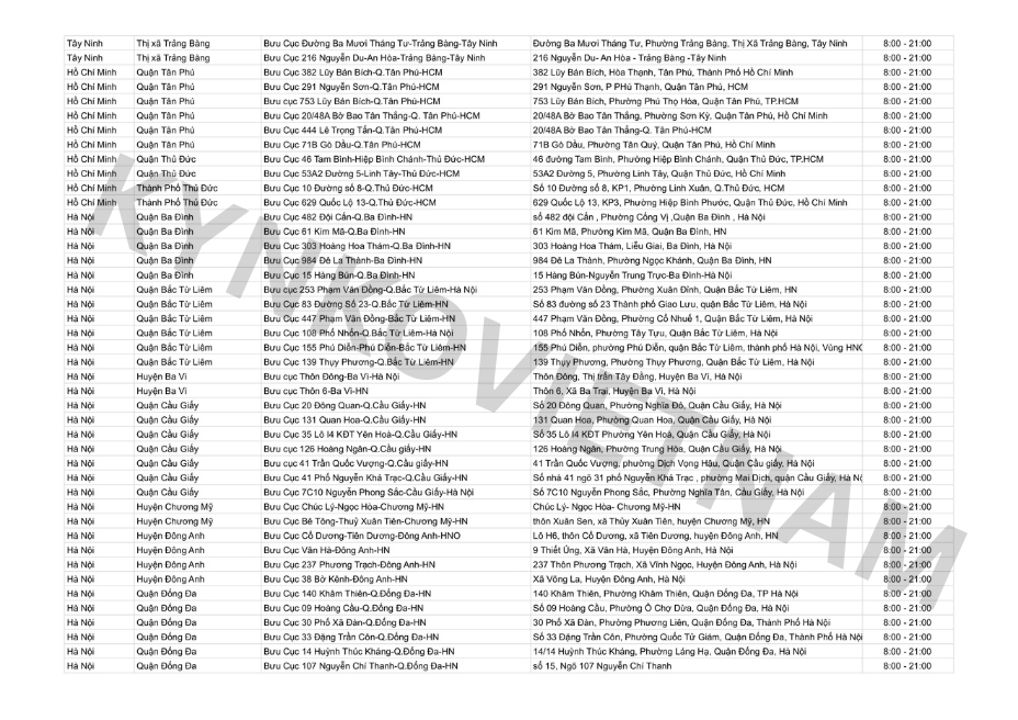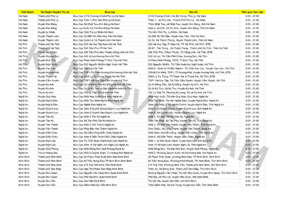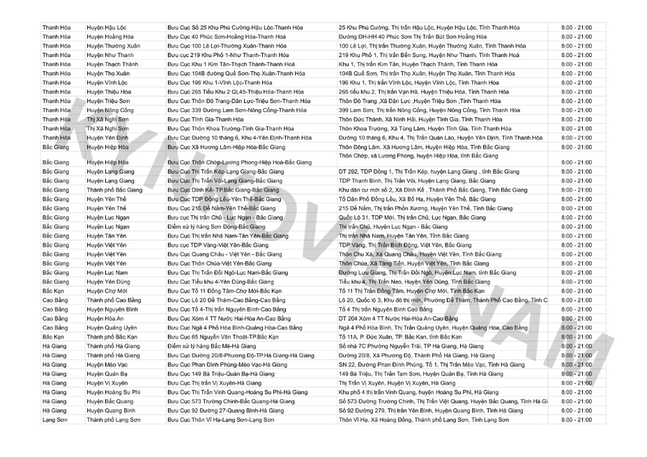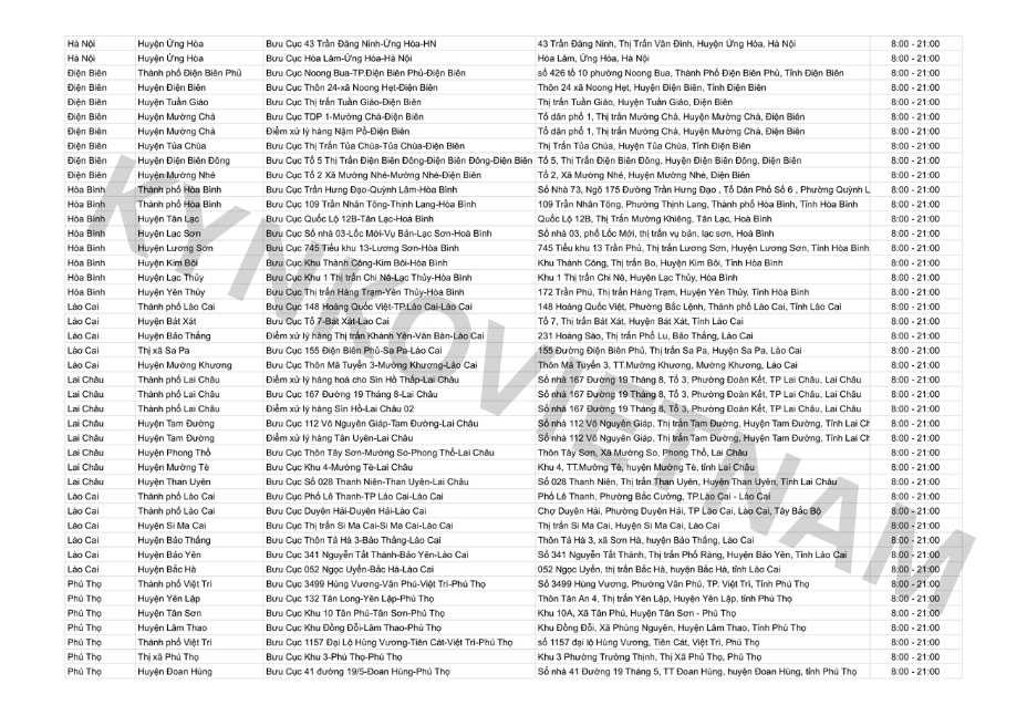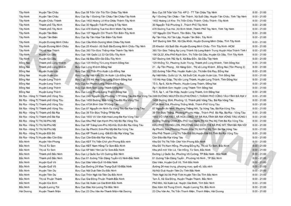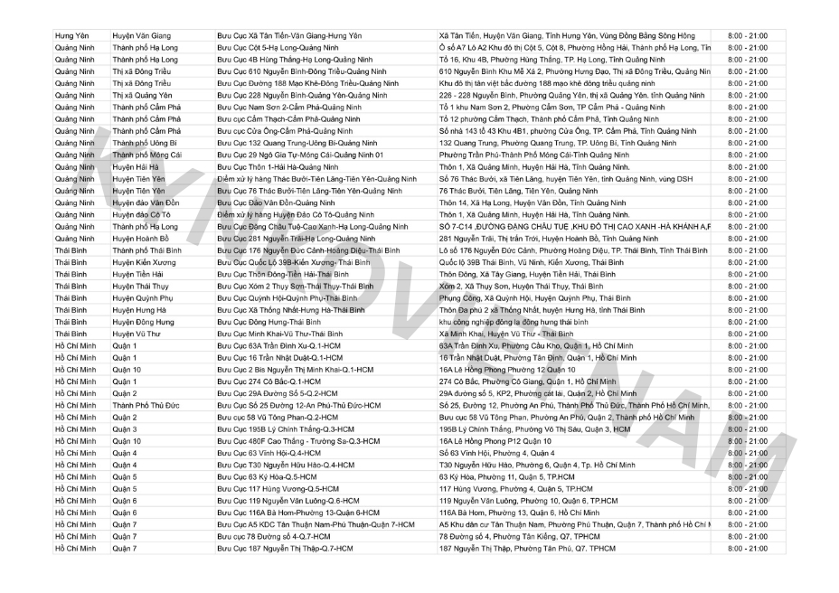 *Danh sách bưu cục GHN theo tỉnh