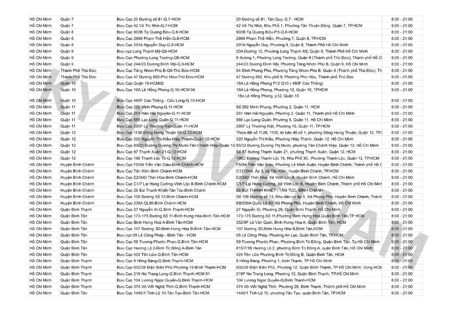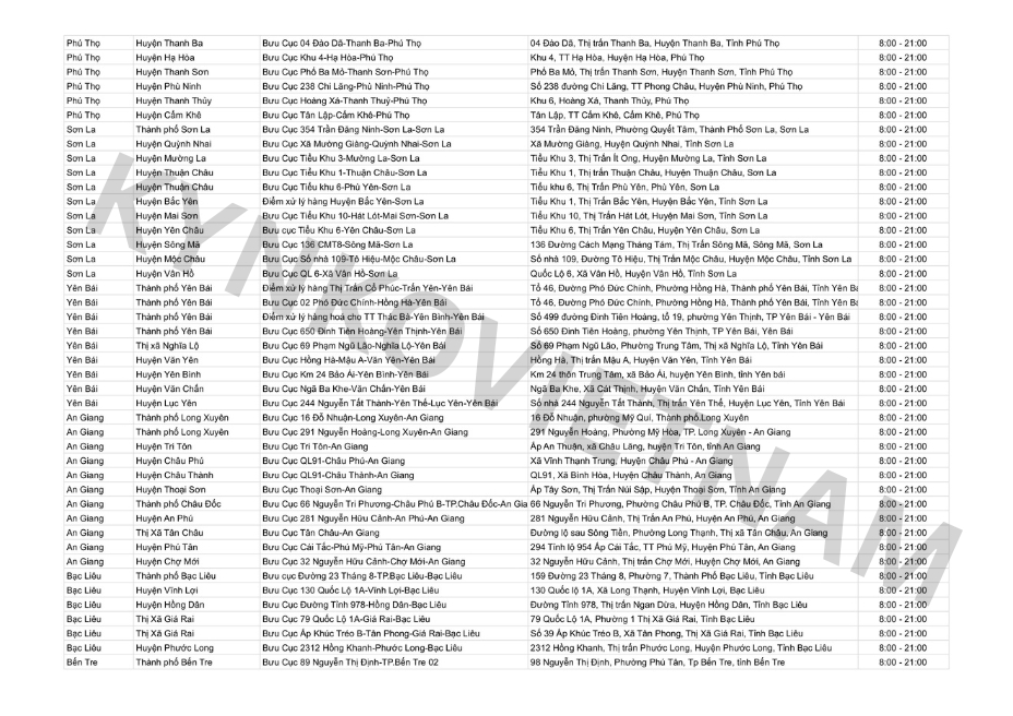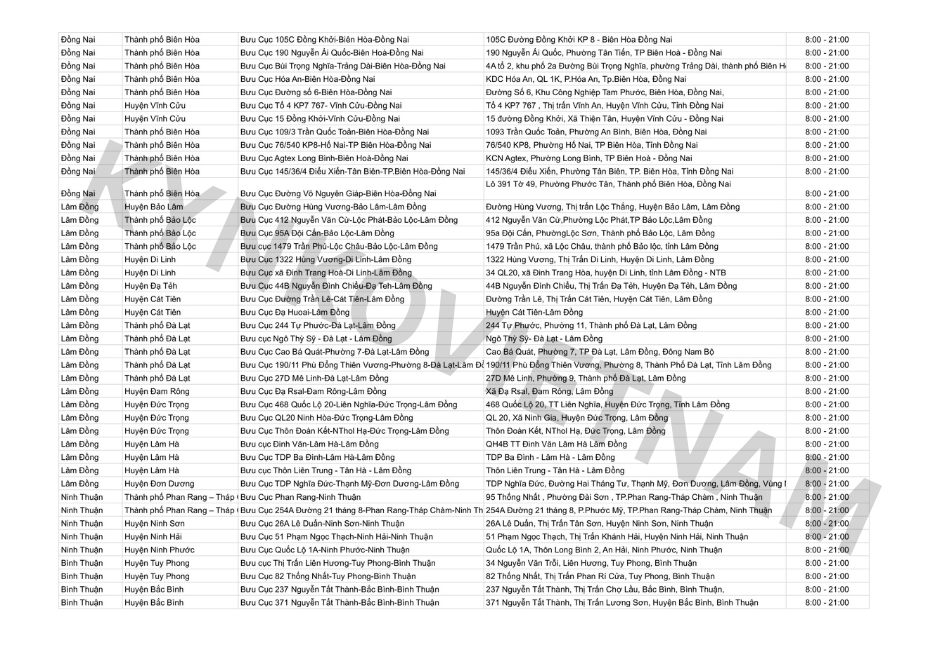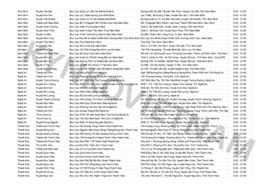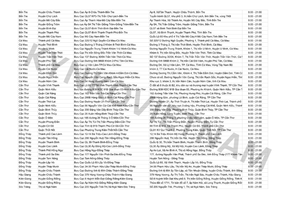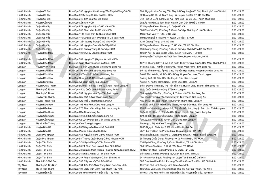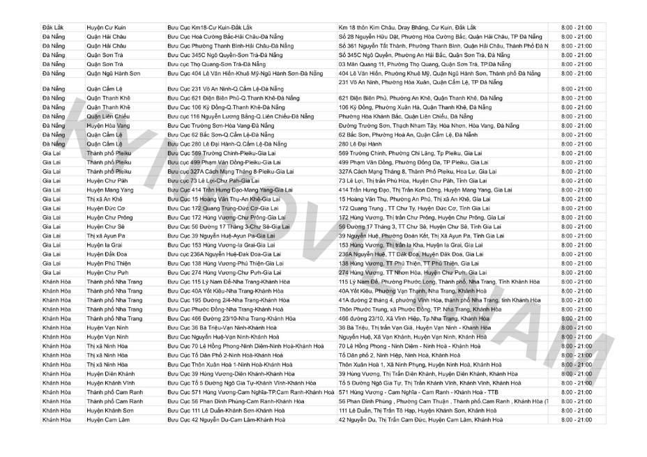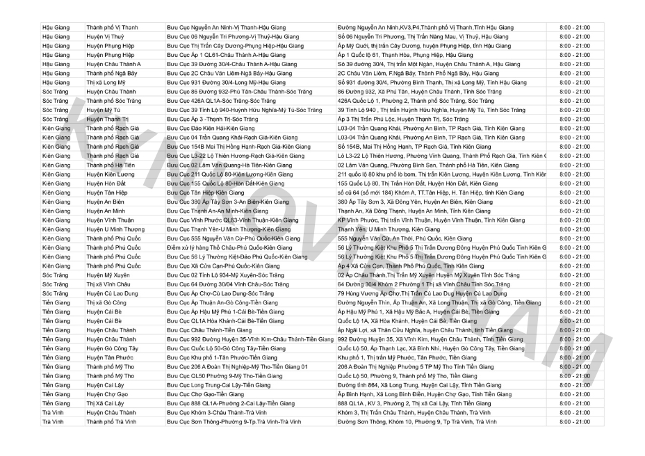 *Danh sách bưu cục GHN theo tỉnh