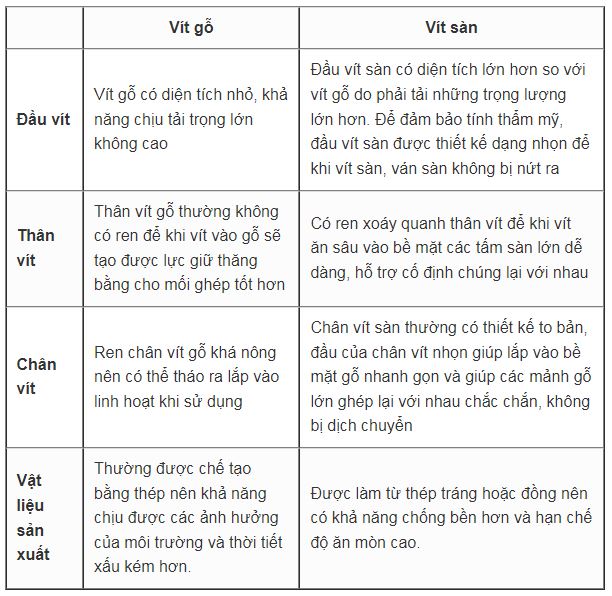 7. Sự khác nhau giữa vít bắt gỗ và vít sàn