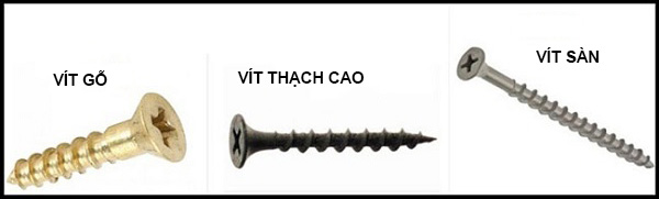 + Vít thạch cao: Đầu vít bằng, trên đầu có rãnh kiểu Phillips. Ren của vít thường có khoảng cách lớn giữa các vòng ren để dễ dàng vặn vào thạch cao và gỗ. Thân vít thạch cao có nhiều đường cong để hạn chế nước thấm qua thạch cao, bảo vệ bề mặt khỏi ẩm mốc.